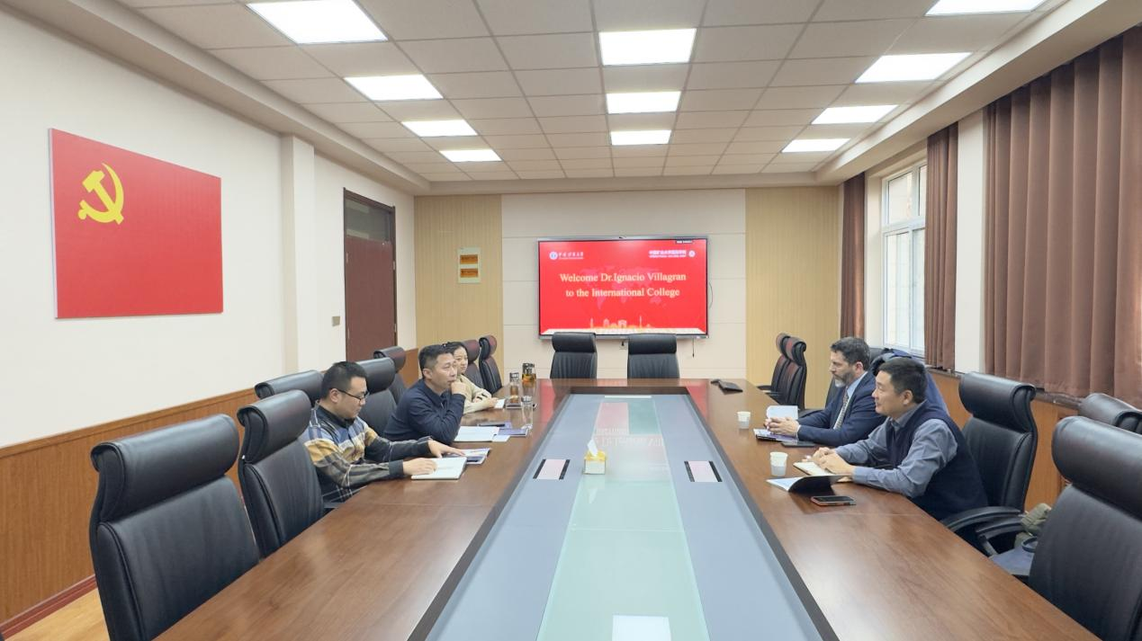 会上,李红海对Ignacio Villagran博士的到访表示热烈欢迎,并简要介绍了我校来华留学教育的历史沿革和发展现状。他指出,近年来学校持续推进国际化办学战略,不断完善留学生培养体系,在招生规模、生源质量、课程建设及跨文化交流等方面取得了显著成果,吸引了来自全球多个国家和地区的优秀学子来校学习深造。