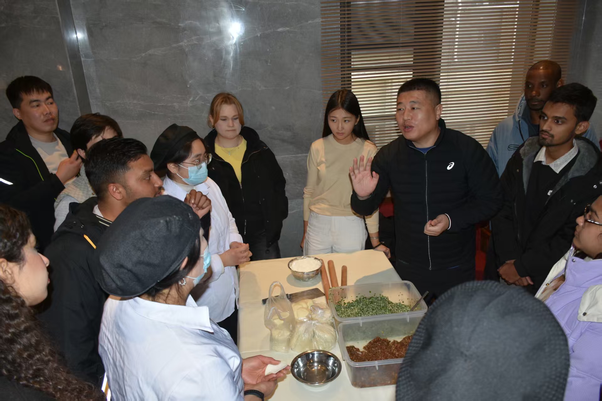 随后的文化体验环节将气氛推向高潮。在面点师傅的悉心指导下,国际学生们兴致盎然地学习中国传统水饺的制作技艺——从擀皮、调馅到捏合,每一步都充满新奇与挑战。活动现场欢声笑语不断,形态各异的饺子在手中诞生。品尝着自己亲手制作的热气腾腾的饺子,学生们不仅满足了味蕾,更对“阖家团圆”“吉祥如意”等饺子蕴含的中国文化寓意有了深切体会。