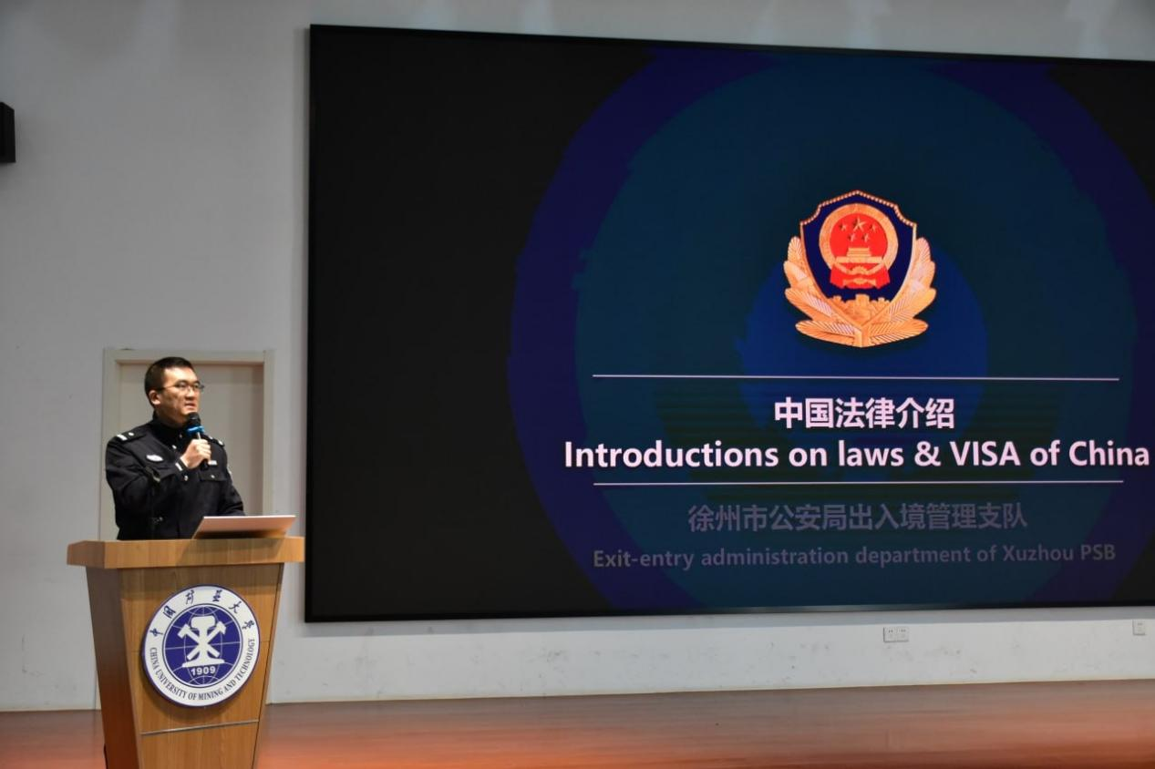 为进一步规范来华留学生日常管理,普及中国法律法规知识,筑牢校园安全防线,助力新生顺利开启在华求学之旅,3月5日下午,我院在文昌校区懋苑学生活动中心隆重举办2026年春季汉语进修生法律法规专题讲座。徐州市公安局出入境管理支队王成警官及学院国际学生辅导员出席活动,近100名春季入学的语言进修生参加了此次学习。
